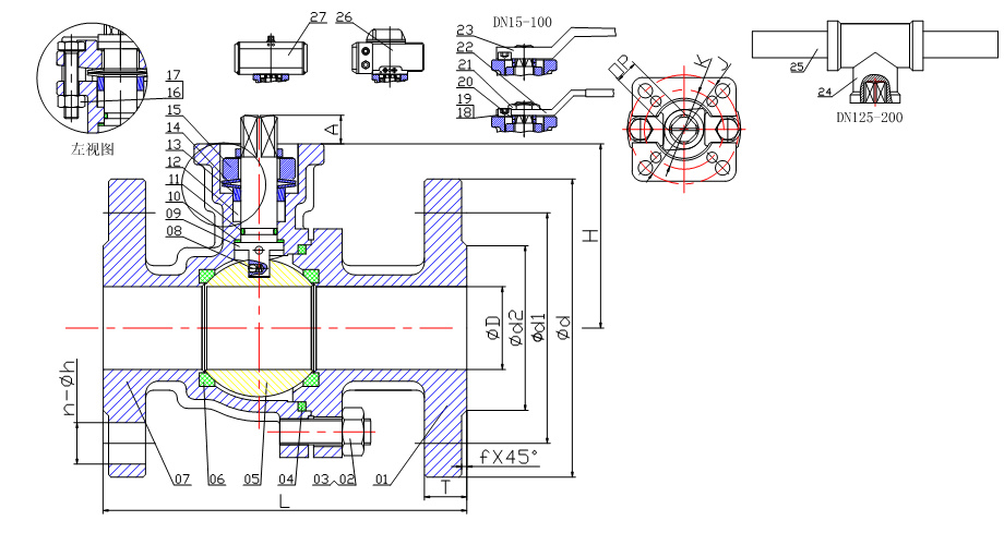 5,球閥的啟閉只做90°轉動,故容易實現(xiàn)自動化控制和遠距離控制,球閥可配置氣動執(zhí)行器、電動執(zhí)行器。