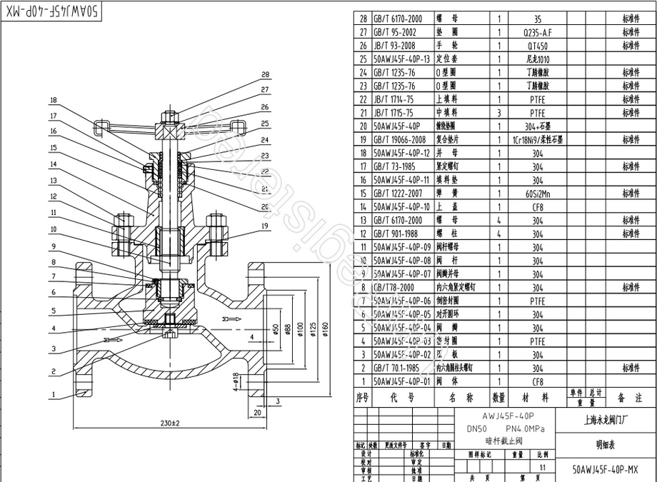 氨用截止閥結(jié)構(gòu)圖-氨用截止閥材料明細(xì)表