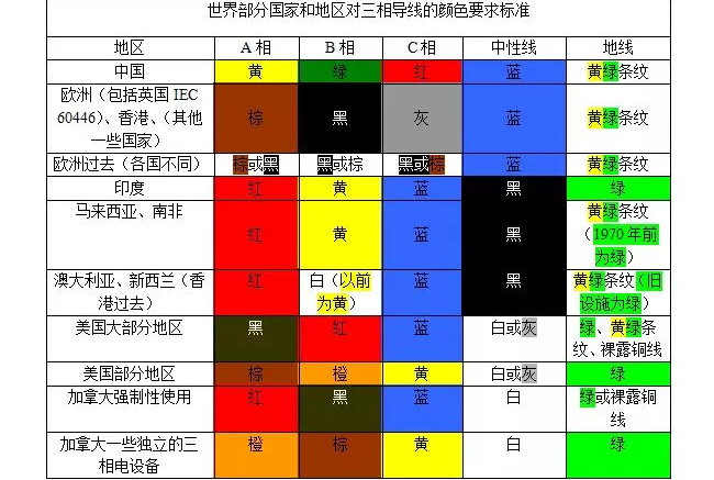 零線或中性線:淡藍色;安全用的接地線:黃和綠雙色。