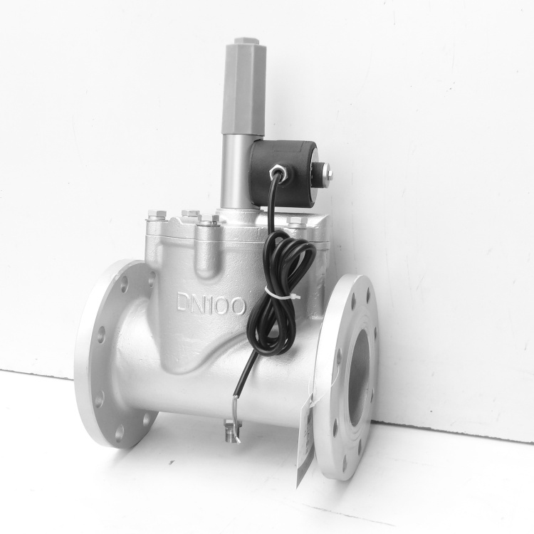 燃氣緊急切斷閥屬于防爆燃氣電磁閥種類,在電磁閥結(jié)構(gòu)增加了自鎖裝置及手動復(fù)位裝置起到人防措施,設(shè)計采用電動控制關(guān)閉和手動開啟方式,以實現(xiàn)將技防措施安全(無盲區(qū))轉(zhuǎn)換為人防措施。因為,強制關(guān)閥后,必須人工到現(xiàn)場檢查才能恢復(fù)供氣,以達到了人工現(xiàn)場保障用氣安全的目的。接收各種燃氣安全探測器(如:泄漏,壓力異常,流量異常、溫度異常、地震等)或/和控制裝置發(fā)出的緊急關(guān)閥控制信號,快速自動關(guān)閉并可靠切斷氣源的流通。