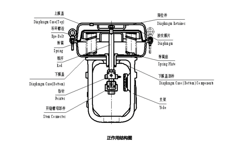 正作用:薄膜氣室供氣壓力增加,執行機構推桿向下運動