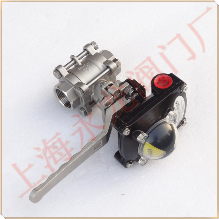 帶位置開關球閥采用不銹鋼球閥與閥門回訊器組合,通過固定支架把回訊器固定在球閥的頂部,在手動開關過程,以將閥門狀態以開關信號形式輸出,可方便接至現場PLC或DCS系統中,實現閥門開關狀態的遠程反饋。